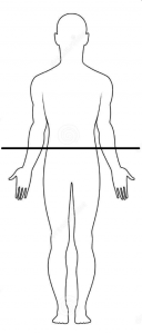 Le plan vertical délimite le côté droit du côté gauche du corps en passant par le nombril.